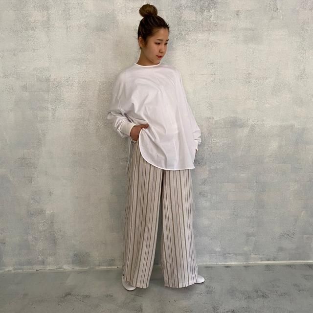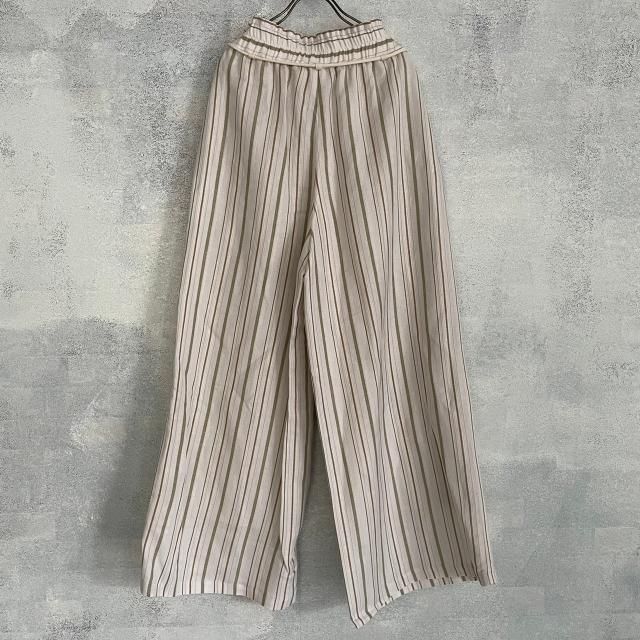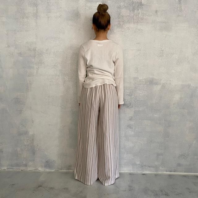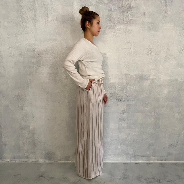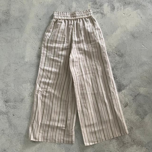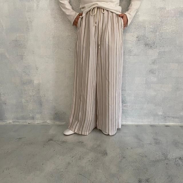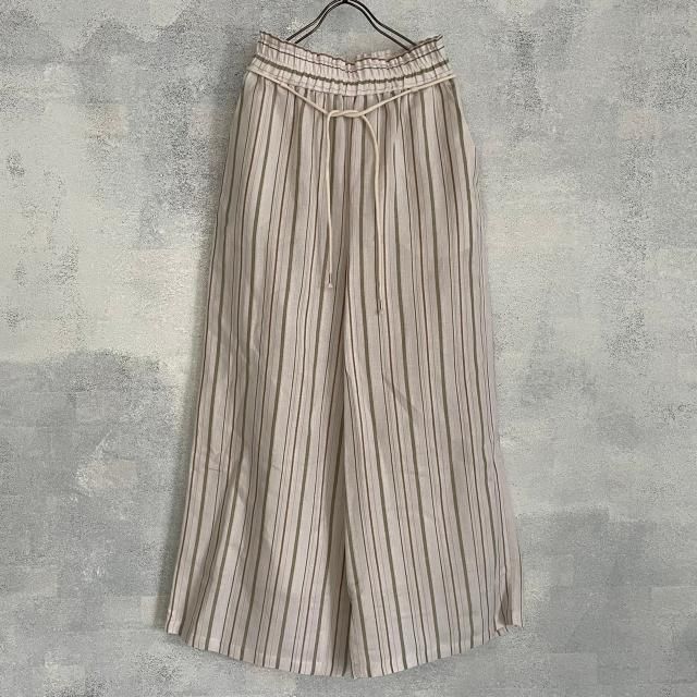 Liyoca リネンジャガードストライプワイドパンツ